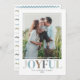 Celebrate the season with this personalised photo Christmas card featuring a large family photo on the front and the word JOYFUL in bold, colourful lettering. You can customise the colours of the letters to match your photo or leave them as is. The back features a vibrant striped pattern in coordinating colours with an extra photo template for more memories. Add your family name and the year on the front to create a one-of-a-kind custom holiday card. This festive photo Christmas card is perfect for sharing holiday greetings, capturing family moments, and sending cheerful wishes to friends and loved ones. Ideal as a colourful Christmas card or family Christmas photo card, it’s a standout holiday photo card that makes every greeting memorable.