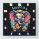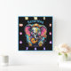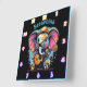 A vibrant elephant wearing a hat strums a guitar, surrounded by playful, colourful patterns that evoke a festive atmosphere, capturing the essence of whimsy and creativity.