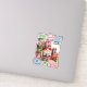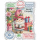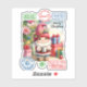 A cheerful elf in a pink hat holds a mug, surrounded by colourful presents and a decorated Christmas tree. Featuring playful stamps and festive messages, this holiday sticker captures the spirit of Santa's workshop and the joy of the season.