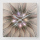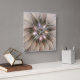 Joyful Flower Abstract Beige Brown Floral Fractal Square Wall Clock