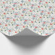 Elegant and festive Christmas wrapping paper features a holiday botanical pattern of green pine boughs, red poinsettia flowers and winter pears on a white background.