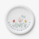 A fun floral, warm weather design featuring a whimsical garden. Residing in the garden is a pale, blue bird with an assortment of flowers in red, pink and yellow. The text area, HAPPY BIRTHDAY, can be customised.