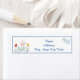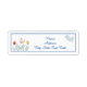 A fun floral, warm weather design featuring a whimsical garden. Residing in the garden is a pale, blue bird with an assortment of flowers in red, pink and yellow. The design is tied together with a thin ruled border. Type font and colour can be customised.