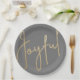 Joyful in a faux gold foil script on these grey paper plates in 2 sizes, are stylish for any Christmas holiday occasion or give as a hostess gift. MATCHING items in our store.