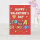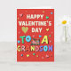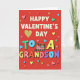 This Valentine's Day card features a bright red background that feels cheerful and loving. Across the top, the text “HAPPY VALENTINE’S DAY” appears in off-white letters with a simple, easy-to-read look. Just below, the words “TO A GRANDSON” are spelled out in different colors like green, blue, yellow, pink, and purple, with slight shadowing that makes the letters stand out. In the word “DAY,” the “O” is replaced by a gold heart that looks like it’s sparkling, adding a sweet little highlight ❤️. Near the bottom, there’s a small toy train in soft pink, blue, and black, and it looks like it’s carrying tiny wrapped gifts. Scattered around the card are small hearts and stars in several colors, like confetti floating in the background. It feels meaningful because it mixes a clear message with fun details that show care for a grandson in a warm, affectionate way 🥰. Hope it helps you share Valentine’s Day sentiments with someone you love.