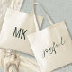 Joyful Green Calligraphy Monogram Initials Tote Bag