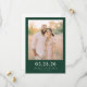 This wedding save the date features a rectangular layout with a central photograph bordered by a solid dark green frame, capturing two individuals in an outdoor setting during sunset or sunrise. The colour palette includes earthy tones of soft beige, muted greens, and warm golds, creating a rustic elegance theme. The design uses bold, sans-serif typography for customisable placeholders, enhancing its modern appeal. The mood is joyful and celebratory, perfect for announcing your special day with a touch of natural beauty.