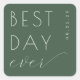 This wedding sticker features a minimalist design with a dark green background and white text, creating a striking contrast. The phrase "BEST DAY ever" is prominently displayed in bold uppercase letters combined with elegant cursive script, conveying a sense of celebration and joy. The layout is clean and modern, emphasizing simplicity and sophistication. Perfect for marking special occasions, this sticker adds a touch of elegance to any event.