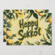 Celebrate Sukkot with a beautifully designed greeting card that radiates joy and tradition! This festive card features lush green leaves and bright yellow lemons, capturing the essence of the holiday in a vibrant, artistic style. The bold Happy Sukkot lettering stands out against a warm, textured background, making it the perfect way to send heartfelt blessings.