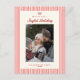 Celebrate the season in style with this joyful holiday postcard, featuring a classic red bow and festive red-and-cream stripe pattern that evokes warmth and tradition. Designed to showcase one cherished family photo and your family name and year, this card is the perfect way to share love and laughter with friends and relatives near and far. Here is why we love this holiday postcard: the elegant and jolly red bow adds a timeless festive flair, the bold stripe pattern creates a cosy, whimsical, candy-cane-inspired backdrop, the custom photo slot makes your family the star of the season, the personalised name feature adds a heartfelt, signature touch and it is ideal for holiday greetings, family updates, or seasonal keepsakes