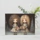 Christmas gift exchange, friends holiday card, festive gift notecard, giving gifts illustration, holiday friends card, Christmas cheer design, gift exchange scene, friendship holiday card, joyful Christmas exchange, festive gift-giving art