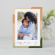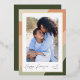 A chic and elegant Kwanzaa holiday card design featuring a single vertical or portrait-oriented photo on a background of organic stripes in shades of sand, peach, sage, and forest green. "Happy Kwanzaa" appears in hand lettered script. Personalize with your family name for the perfect finishing touch to these beautiful holiday photo cards.