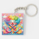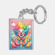 A vibrant cartoon clown with a contagious smile, surrounded by a whimsical world of colourful shapes, stars and clouds. The clown's curly hair and outfit are a kaleidoscope of pastel colours, matching the playful atmosphere. The image excludes happiness and carefree joy, perfect for bringing a smile to anyone's face.
