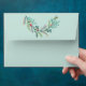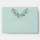 Light blue envelopes with a pretty floral sprig on the outside flap, inside has a branches and berries laurel wreath that reads Peace & Joy.