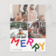 Playful and bold, large capital letters form the word "MERRY" below the photo. Each letter is infused with a different bright colour, creating a visually striking display that radiates with festive cheer. The colourful letters dance joyfully, inviting recipients to embrace the merriment and excitement of the holiday season.