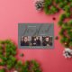 This chic custom "Joyful" Christmas holiday card features a unique layout and minimalistic design with a 3 photo spaces on the front and modern and elegant script typography in real gold foil with charcoal grey background colour. Personalise the simple last name or family signature and the year, and choose to include an additional message on the back of the card. An additional photo space is also included on the back. Photo credit: Livia Plaskey Photography @liviaplaskeyphotography