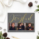 Joyful Modern Grey and Gold Script Photo Collage Foil Holiday Card