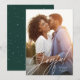 Joyful modern script one photo green Christmas Holiday Card
