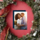 Joyful modern script silver navy Christmas photo Foil Holiday Card