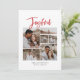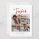Joyful multi photo christmas card. Modern graphic holiday design. Script text with a modern edge. Hand painted striped backer. Change the backer colour to customise.