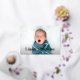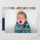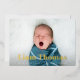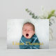 Modern and stylish birth announcements feature your favourite newborn photo in full bleed, with baby's name overlaid in gold foil lettering. Personalise with baby's birth stats beneath. Add three additional photos to the back in a collage layout, with the parents' or family's names in the centre.