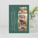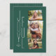A grey and white modern stacked joyful type treatment sits next to a collage of three photos on a green background. The striped coordinating backer is a matching colour. This holiday card is the perfect way to send happy Christmas greetings.