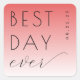 This wedding sticker features a modern and playful design with a gradient background transitioning from deep coral pink to light peach. The phrase "BEST DAY ever" is prominently displayed in bold, uppercase letters paired with elegant cursive script, creating a striking visual impact. The layout is clean and balanced, emphasizing the celebratory message without any additional motifs or elements. Perfect for adding a personal touch to your special day, this sticker captures an upbeat and joyful mood, making it ideal for weddings and other significant celebrations.