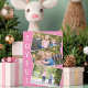 Cute pink Christmas photo collage magnetic card with 3 kids photographs in a fun overlapping snapshot pattern with white border and the word Joyful written vertically down the side. Find your three favourite pictures for these pretty family holiday magnets.
