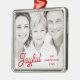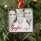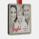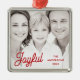 Christmas photo ornament featuring your custom family photo and red text “Joyful” in a festive, retro style font with customizable name and year to the right.