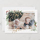 JOYFUL Rustic Greenery Gold Dry Brush Effect Photo Holiday Card