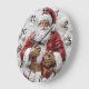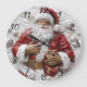 A cheerful Santa Claus adorned in his iconic red suit holds a beautifully wrapped gift, radiating festive joy. Surrounded by snowy ornaments, he embodies the spirit of Christmas, inviting warmth and happiness during this magical season.