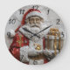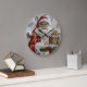This enchanting depiction captures Santa Claus, joyfully presenting a beautifully wrapped gift in one hand while the other clutches a shiny ornament. Adorned in his classic red outfit accented with white fur, he radiates holiday cheer.