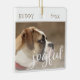 Joyful Script Dog Pet Christmas Photo Ornament. Modern holiday design with a script joyful that overlays the photo - add your dog`s photo. Add your name and year and make a sweet keepsake or a gift.