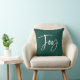Add a festive touch to your home with our Joyful Script holiday throw pillow. The holiday pillow features the word "Joy" in a white, hand-lettered script with a forest green background. The reverse side features a modern, green and white pine tree pattern.