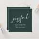 Contemporary Square Joyful Script Merry Christmas Green. Available digitally and printed. Easily personalise with your greeting and names. Joyful is in a modern playful set script in white which can be changed to another colour if you so wish as can the dark green background via the Edit further option.