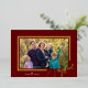 This modern minimal photo Christmas card features real foil accents on a red background. The design is accented the the word "Joyful". Foil colours available are gold, silver and rose gold. Photography © Storytree Studios, Stanford, CA