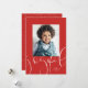 Joyful script modern red one photo Christmas Holiday Card