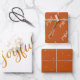 Joyful Script Snowflakes Orange Holiday Wrapping Paper Sheets