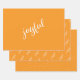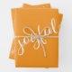 Joyful Script Snowflakes Orange Holiday Wrapping Paper Sheets