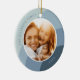 Add a favourite photo to this square ornament for a festive and memorable addition to your tree! Round Design features a favourite photo on each side, on a background of organic wavy stripes in shades of icy winter blue. Personalise with the year and your family name.