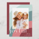 A chic and elegant holiday card design featuring a single vertical or portrait-oriented photo in a unique arched layout, framed by organic stripe shapes in soft shades of clay and spruce green. "Joyful" appears beneath your photo in understated type, with the year tucked inside the letter "o". at the top left, with your family name at the lower right. Personalize with your family name at the lower right for the perfect finishing touch to these nature-inspired Christmas 2021 photo cards.