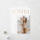 Modern, minimal holiday photo card featuring one large photo on a clean white background. Faux gold lettering reads Joyful in a modern font. The back of the card features a second personal greeting and photo along with your names.