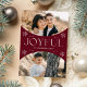 Wish loved ones a happy holiday season by sending them a trendy holiday card designed by Late Bloom Paperie! The unique holiday card features two photos inside of a cranberry-coloured oval arch photo frame. "Joyful" is displayed in white modern lettering accented by hand-drawn snowflakes. Personalise the front of the Christmas photo card by adding your name. The back of the multi-photo holiday card displays a cranberry snowflake pattern.