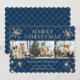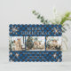Joyful Sparkly Snowflake Blue Plaid Photo Collage Holiday Card