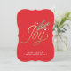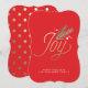 This die cut holiday card features a bright red background with a beautiful faux gold foil Joy and stylish gold polka dot back.