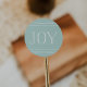 Modern and minimal but still totally festive, our holiday stickers feature "JOY" in white handwritten style block lettering on an icy mint green background, accented with thin crisscrossed bands of white at the top and bottom. Designed to match our Joyful Symmetry card collection.