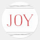 Modern and minimal but still totally festive, our holiday stickers feature "JOY" in red handwritten style block lettering on a white background, accented with thin crisscrossed bands of black at the top and bottom. Designed to match our Joyful Symmetry card collection.