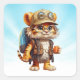 Joyful Tiger Cub with Backpack and coffee Square Sticker
