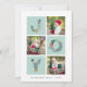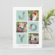 Share holiday greetings with these photo Christmas cards featuring three of your favorite square photos in a gridded layout, alternating with "JOY" in festive typography formed with Christmas botanicals and holiday flowers. Add your family name or names and the year along the bottom. Cards reverse to a matching holiday botanical pattern on festive light sage green.