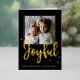 Joyful Typography Script Modern Photo Christmas Foil Holiday Card